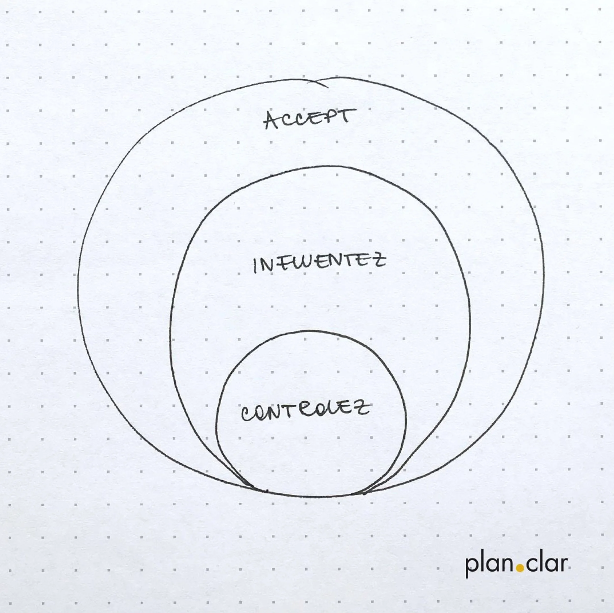 • stai față în față cu provocarea și vezi [adică scrie pe hârtie] ce e în controlul tău din ce e acolo.